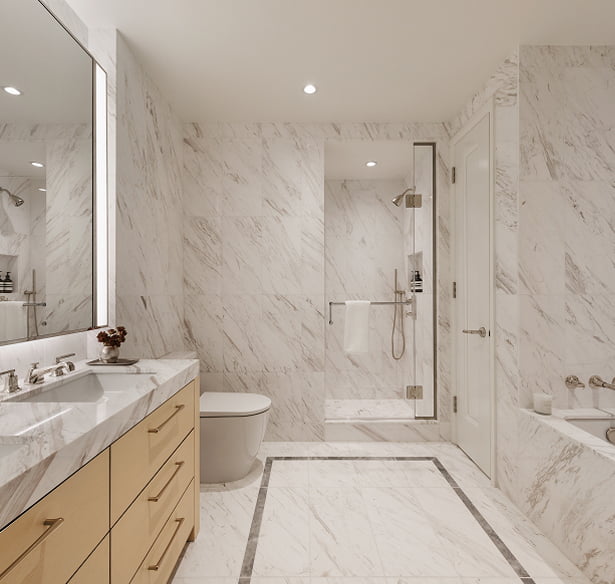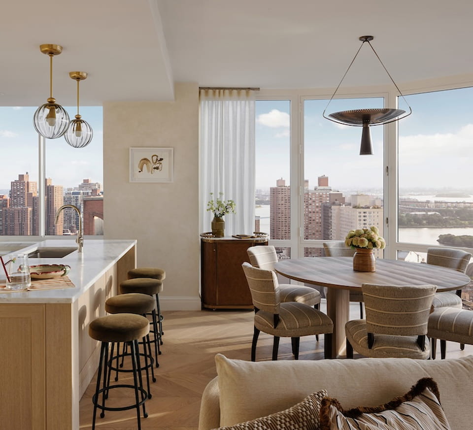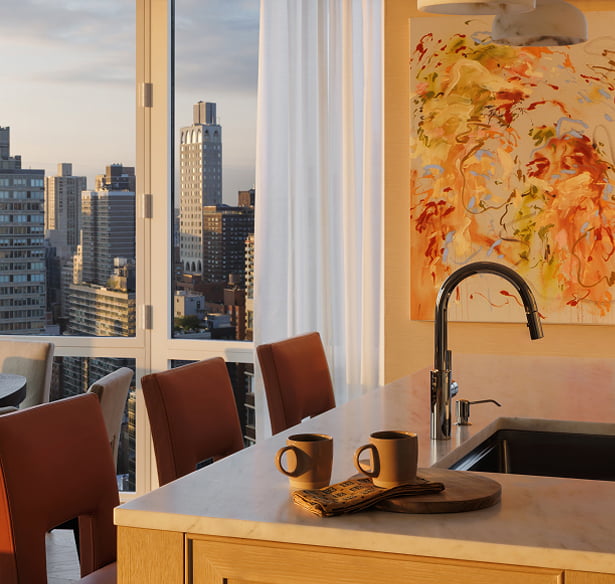 144 one- to four-bedroom residences with sweeping city and river views, gracious layouts and artful finishes.